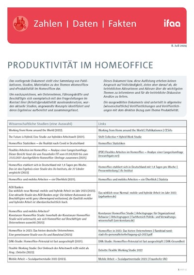 Das vorliegende Dokument stellt eine Sammlung von Publikationen, Studien, Materialien zu den Themen »Homeoffice« und »Produktivität im Homeoffice« dar.
