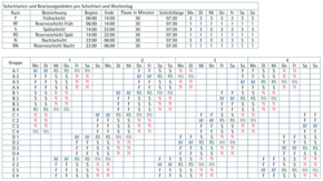 - Bei den abgebildeten Schichtmodellen liegt die vereinbarte wöchentliche Sollarbeitszeit bei 35 Stunden.
